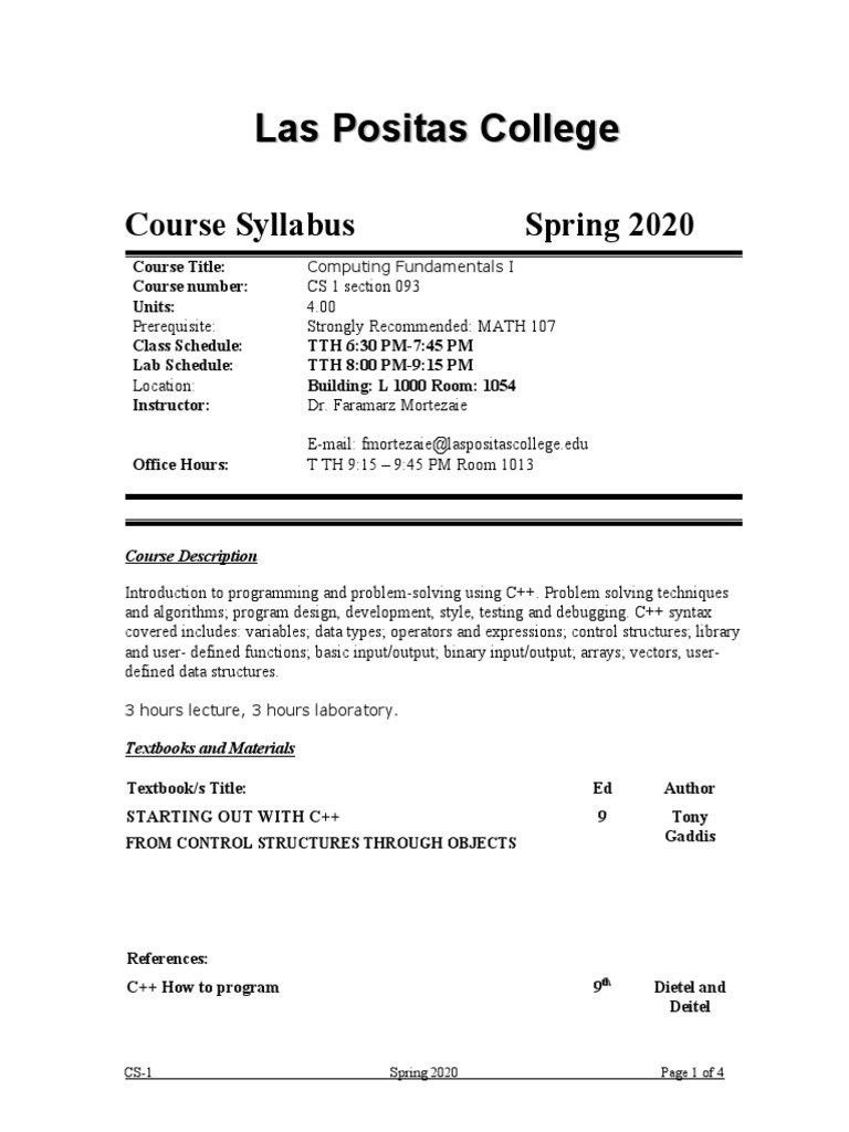 Syllubus Spring 2020 Pdf C Academic Dishonesty